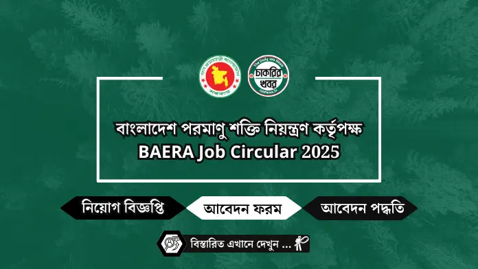 বাংলাদেশ পরমাণু শক্তি নিয়ন্ত্রণ কর্তৃপক্ষ (BAERA) জনবল নিয়োগের জন্য নতুন নিয়োগ বিজ্ঞপ্তি ২০২৫ প্রকাশ করেছে। সর্বমোট ৯টি ক্যাটাগরিতে ১১ জন প্রার্থী নিয়োগ দেওয়া হবে। নারী ও পুরুষ উভয়েই আবেদন করতে পারবেন। নিচে পদ অনুযায়ী বিস্তারিত তথ্য তুলে ধরা হলো।